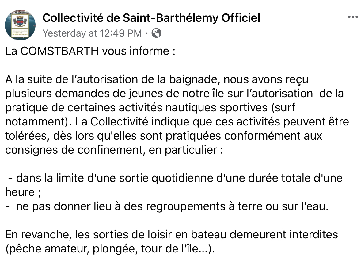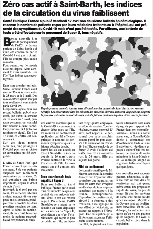 Good news yesterday in the ARS daily update: the last Saint Barth patient who was infected with Covid-19 is cured. Thus, the island no longer has any proven cases.
